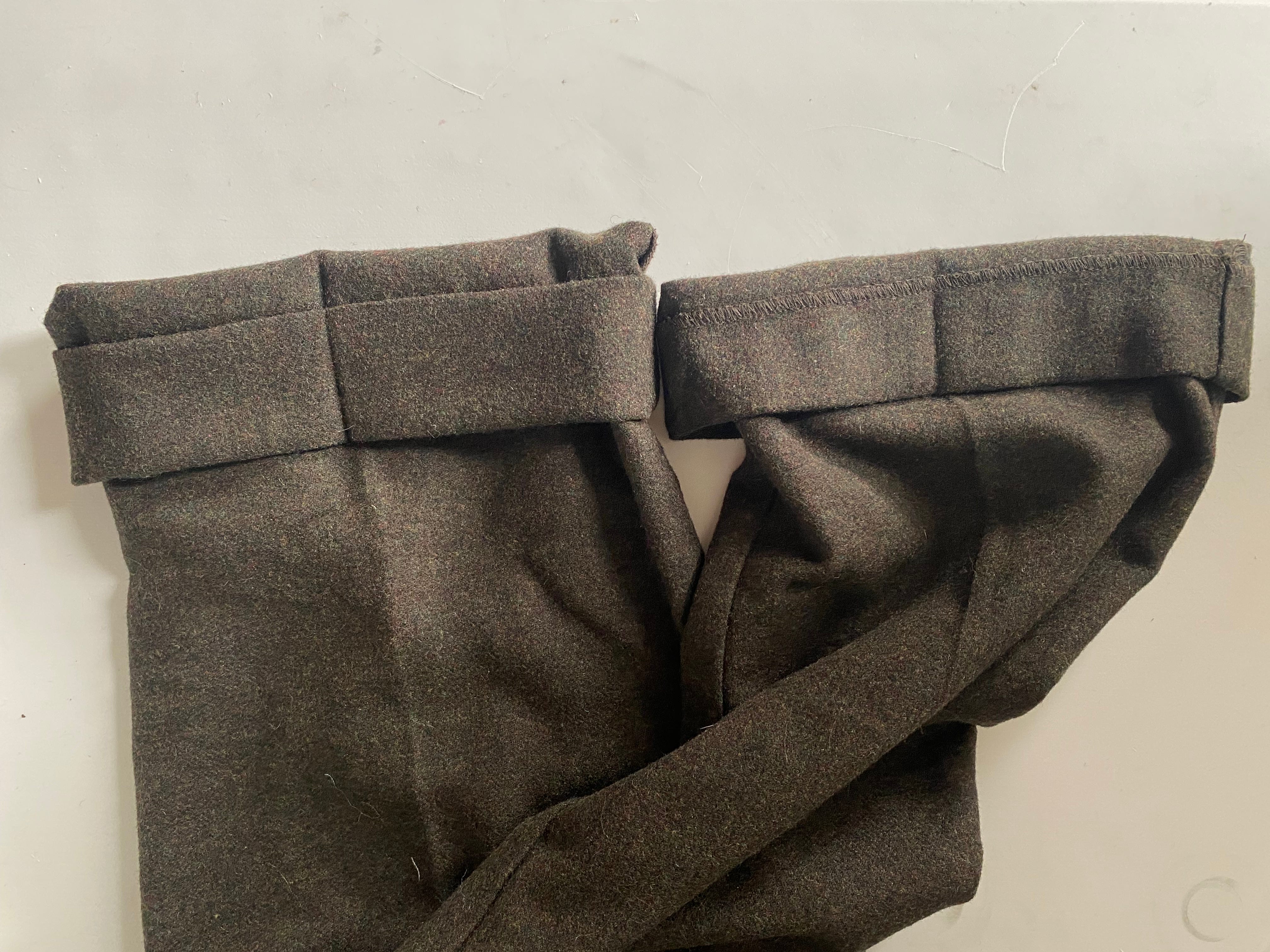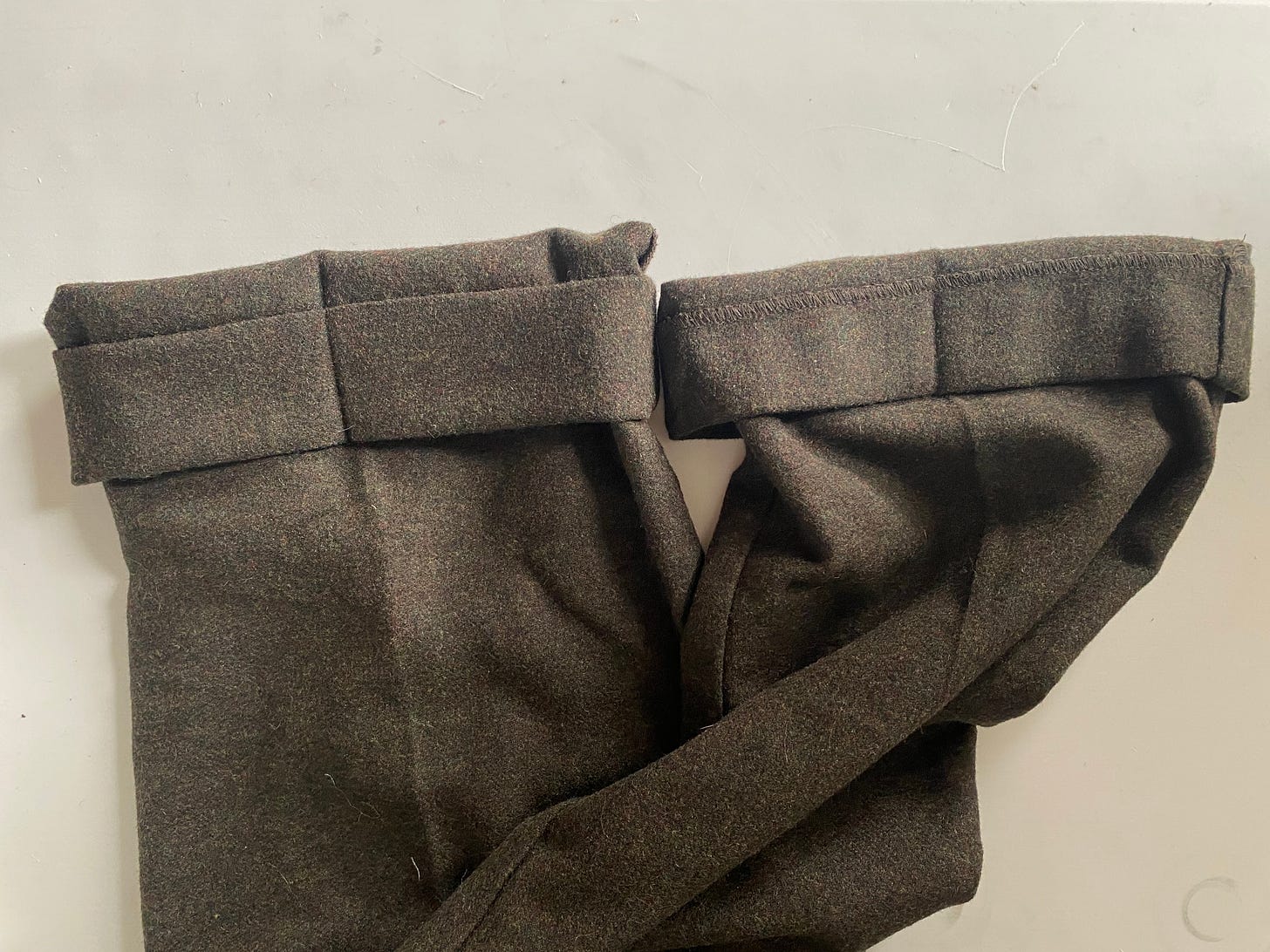 The first repair was easy enough, just raise the hem on some wool dress pants. Only tricky part about this is the blind hem which I always do by hand. I know you can get your machine to do it but that has always ended in disaster for me and I don’t mind the hand work. At first I folded the cuff in twice (left leg above) and hemmed it which was a diversion from how the factory had done it which was one turn with a surge edge (right leg above). I got self-consciousness about how bulky the double turned hem was so I ended up ripping it out and doing the factory method. In the end it really made no difference and I probably should have left it since a double turned cuff in my opinion is a nicer finish.